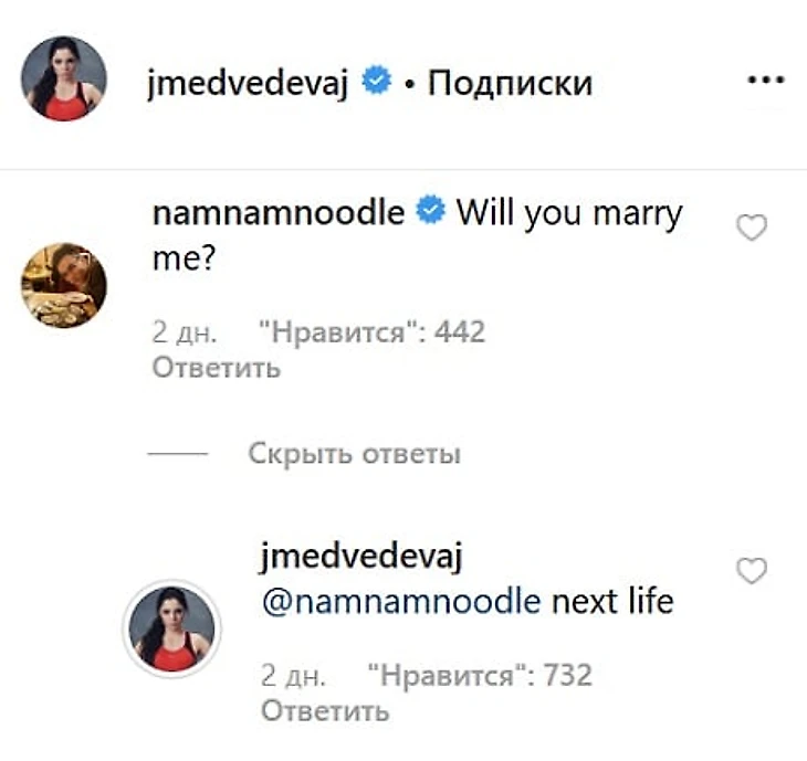 Медведева ответила: «В следующей жизни».