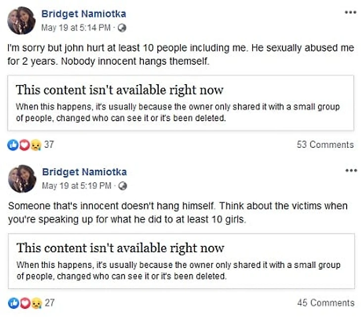 «Извините, но Джон причинил боль как минимум 10 людям, включая меня. Он подвергал меня сексуальному насилию в течение двух лет. Невинные не лезут в петлю.