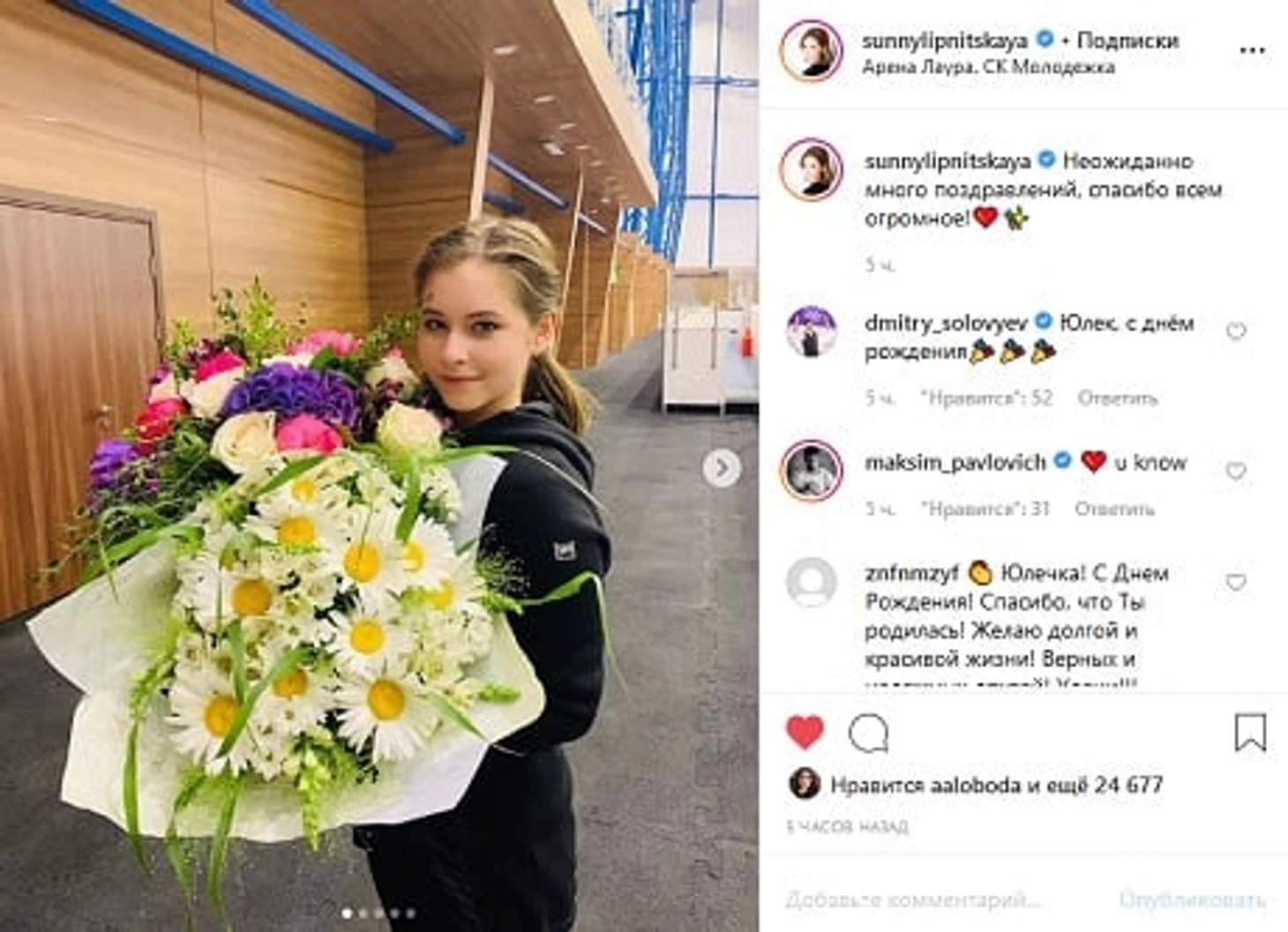 1. Юлия Липницкая поблагодарила всех за поздравления с днем рождения.