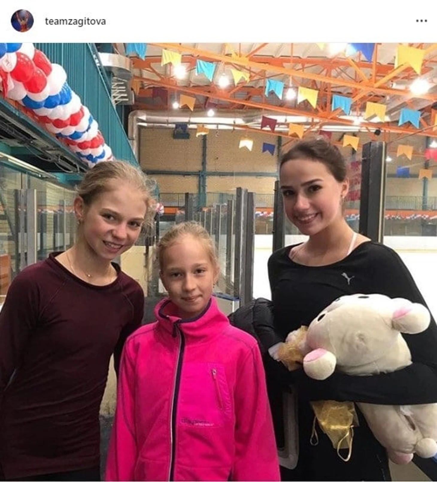 3. Александра Трусова и Алина Загитова сфотографировались с бельгийской фигуристкой Эмилией Солоухин.