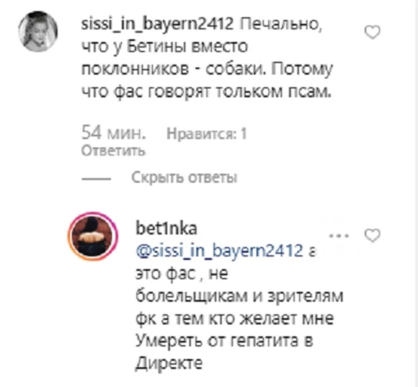 «Печально, что у Бетины вместо поклонников – собаки. Потому что фас говорят только псам», – прокомментировала пост подписчица.