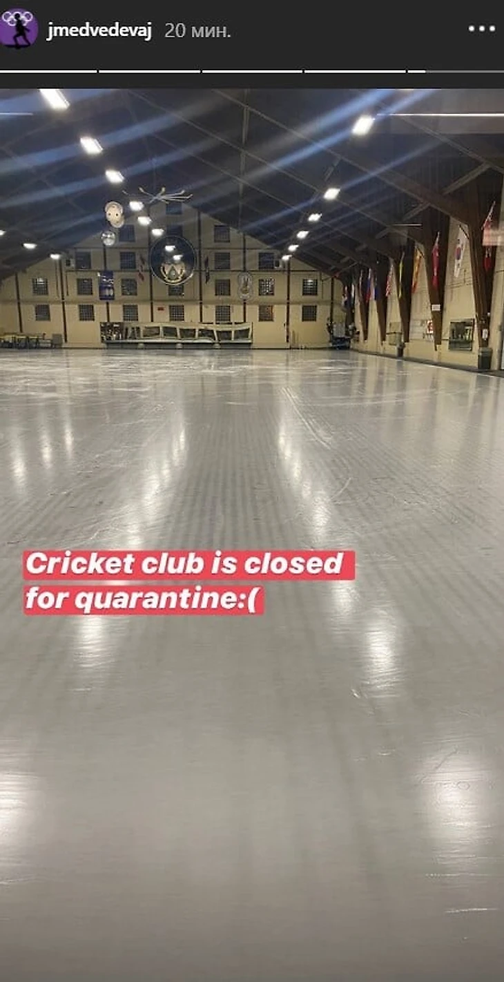 Двукратная чемпионка мира Евгения Медведева сообщила, что Cricket Club в канадском Торонто, где она тренируется, закрыт на карантин.