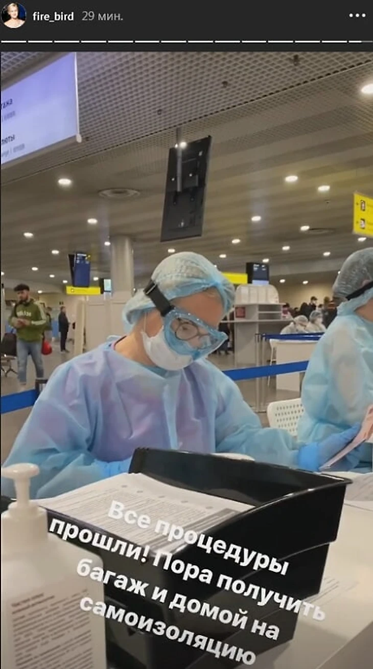 «Все процедуры прошли. Пора получить багаж и домой на самоизоляцию», – написала Волосожар.