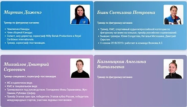 Сегодня обе карточки исчезли с сайта. Теперь тренерами числятся только четыре человека.