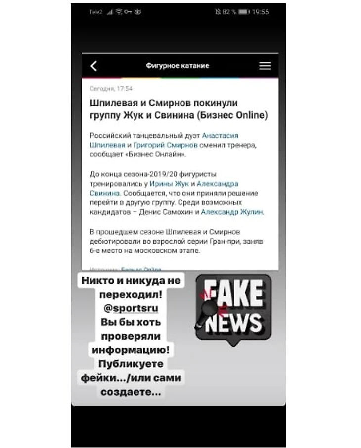 Жулин заявил, что Sports.ru опубликовал фейковую новость о переходе Шпилевой и Смирнова. А потом удалил сторис (дуэт действительно сменил тренера)