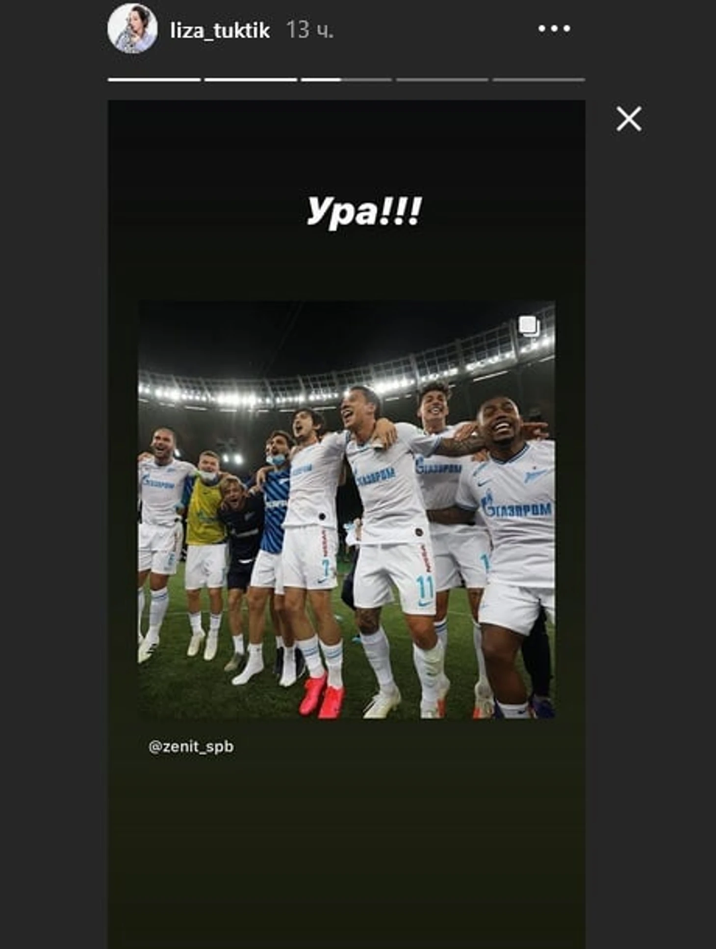Туктамышева опубликовала фото «Зенита» в сторис и написала: «Ура!!!»