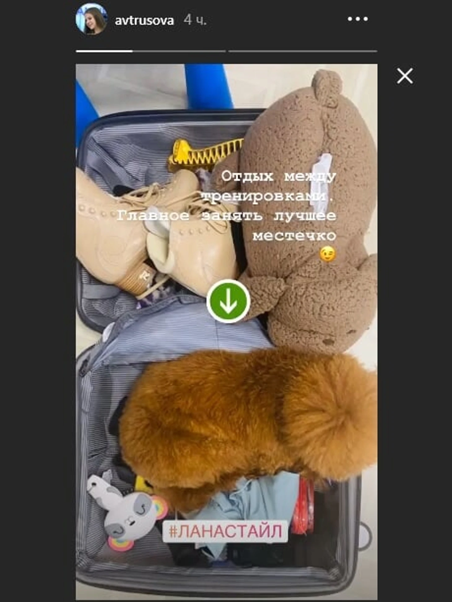 «Отдых между тренировками. Главное – занять лучшее местечко», – написала Трусова.