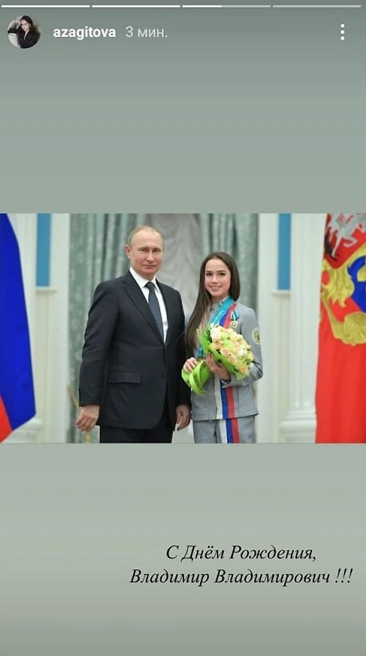 Олимпийская чемпионка Алина Загитова поздравила с днем рождения президента РФ Владимира Путина.