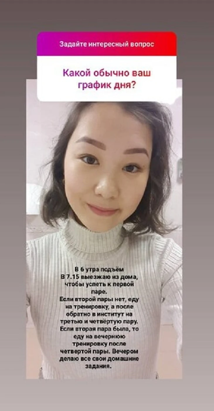 Вечером делаю все свои домашние задания», – написала Турсынбаева в инстаграме.