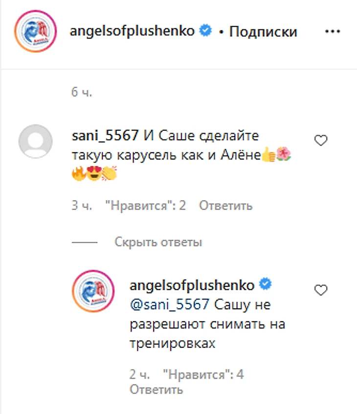 Сегодня академия в инстаграме выложила несколько фото с тренировки Алены Косторной. Один из болельщиков попросил показать подобные фото Трусовой.