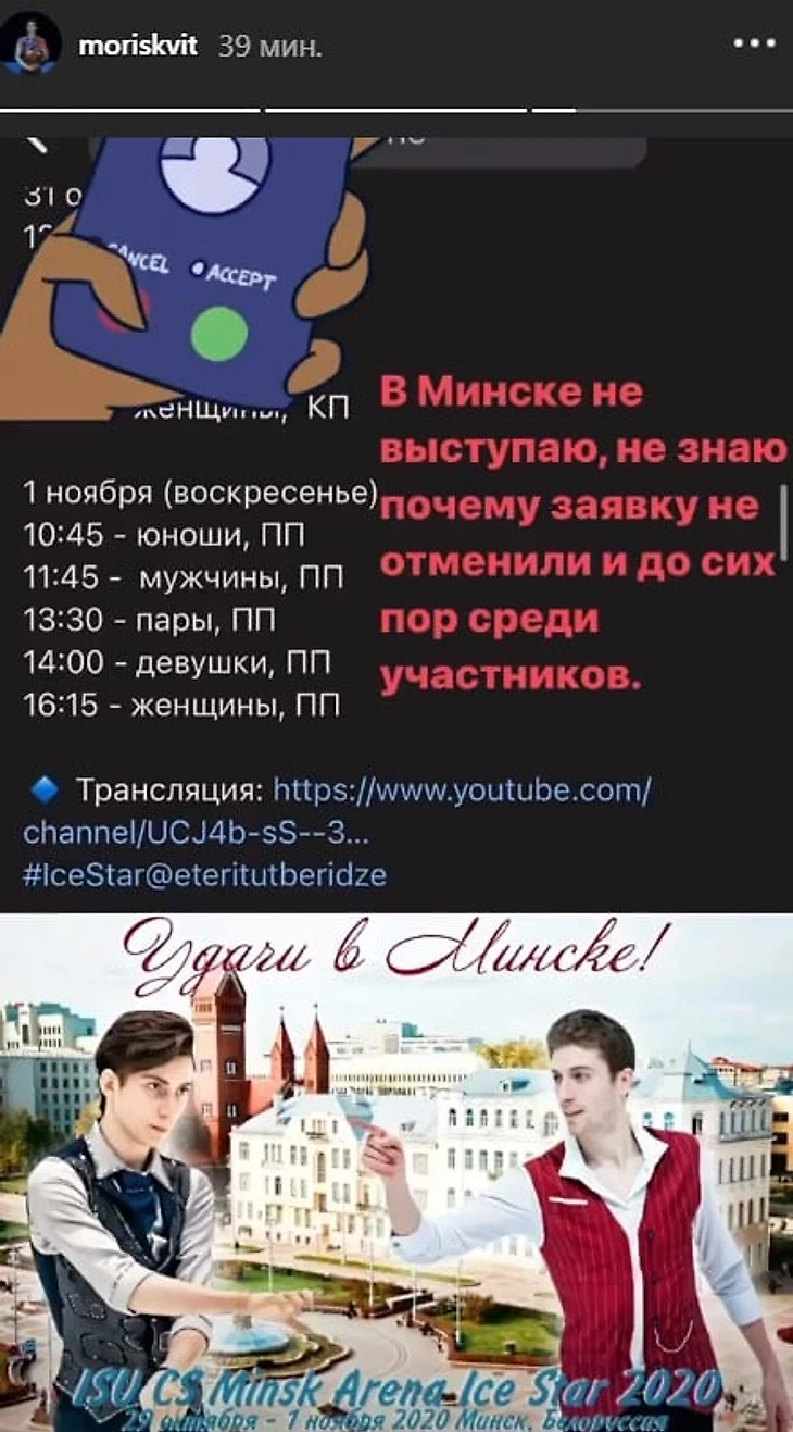 Грузинский фигурист Морис Квителашвили сообщил, что не выступит на турнире Ice Star в Минске.