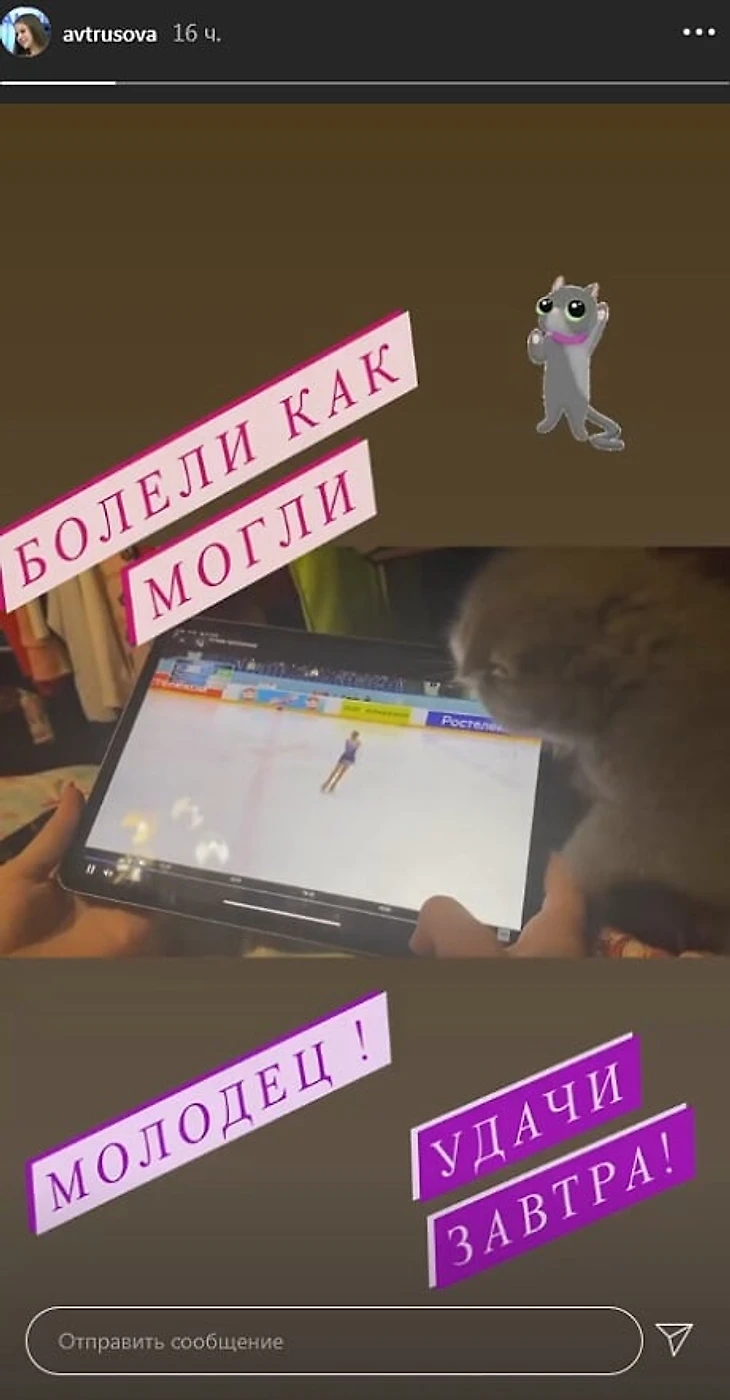 «Болели как могли! Молодец! Удачи завтра!» – написала Трусова после короткой программы.