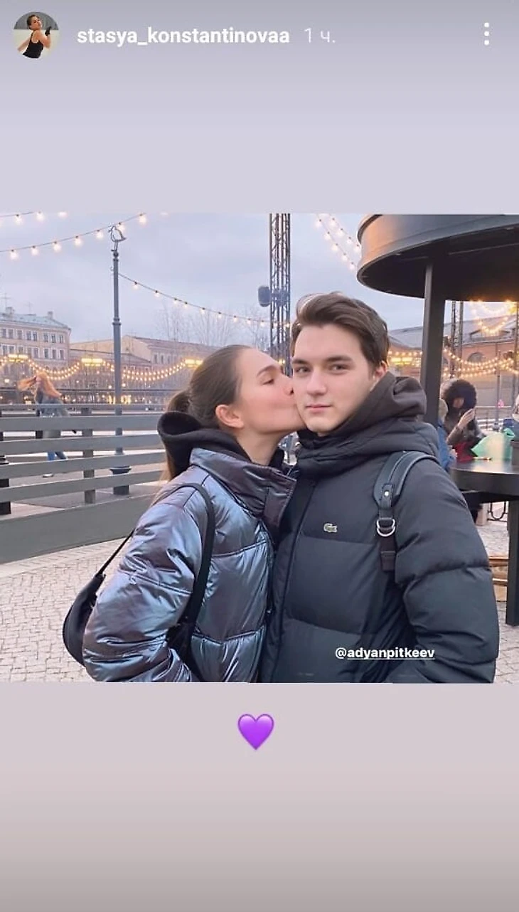 Российская фигуристка Станислава Константинова опубликовала фото, на котором целует бывшего фигуриста Адьяна Питкеева.