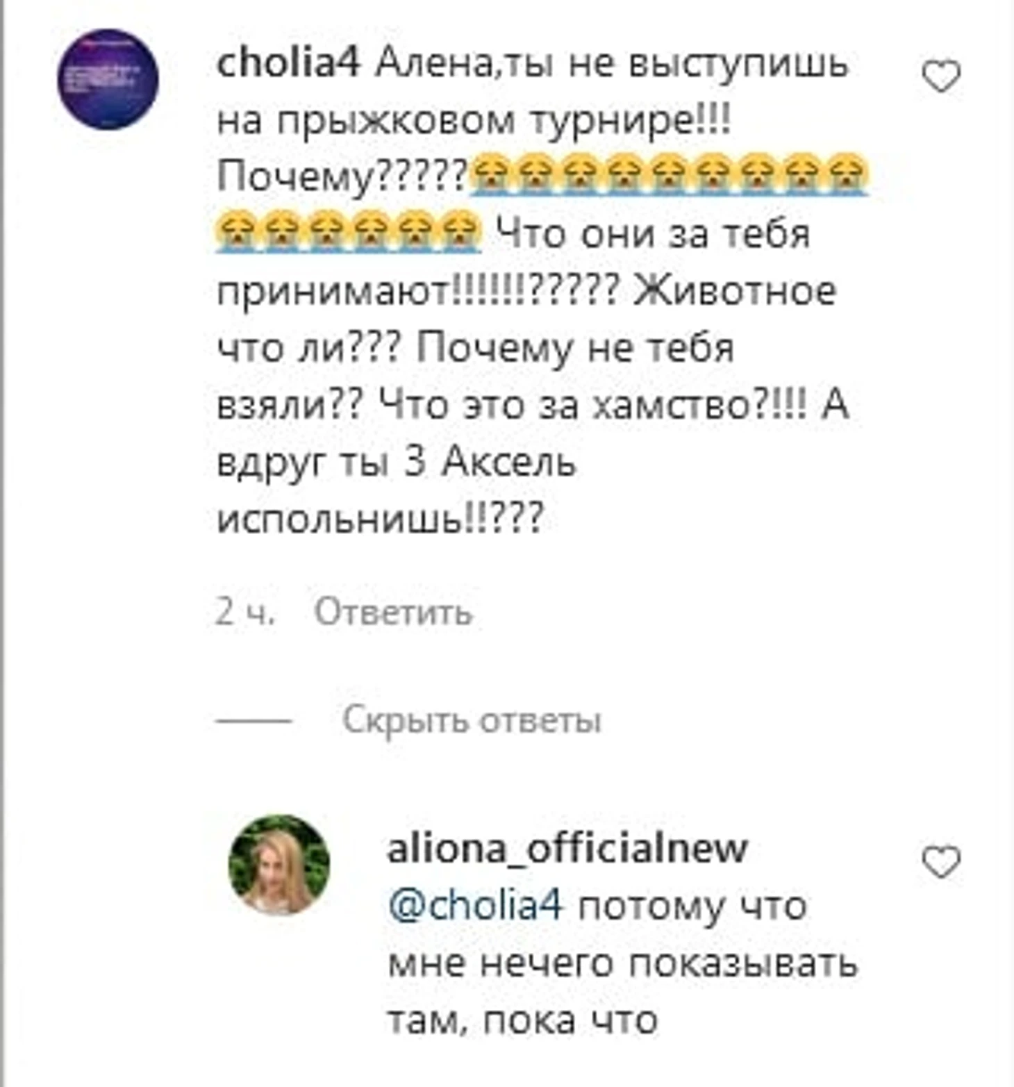 «Потому что мне нечего показывать там пока что», – написала Косторная в ответ на сообщение болельщицы.