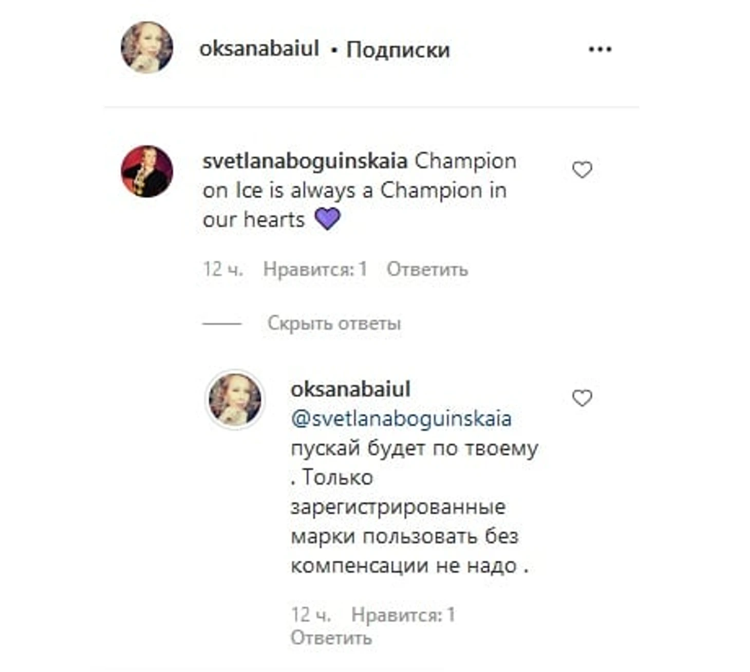 Олимпийская чемпионка Лиллехаммера-1994 Оксана Баюл считает, что заслуженный тренер России Этери Тутберидзе неправомерно использовала название «Чемпионы на льду» для своего шоу.