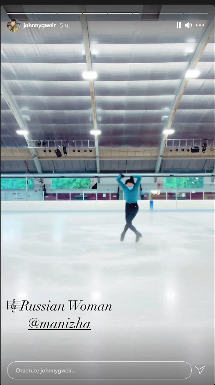 Бывший американский фигурист Джонни Вейр станцевал на льду под песню «Русская женщина», с которой певица Манижа представляет Россию на Евровидении.