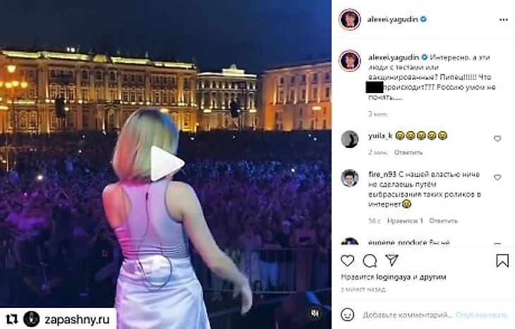 «Интересно, а эти люди с тестами или вакцинированные? Пипец (позднее фигурист отредактировал пост, заменив это слово нецензурным эквивалентом – Sports.ru)! Что, ###, происходит? Россию умом не понять…» – написал Ягудин.
