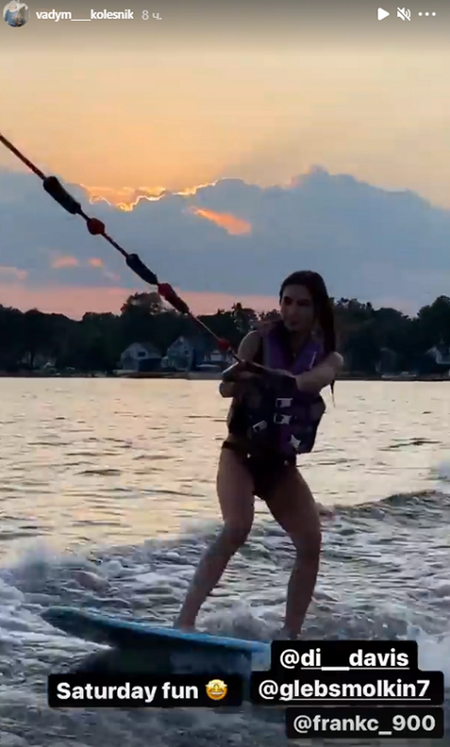 Российская фигуристка Диана Дэвис прокатилась на вейкборде.
