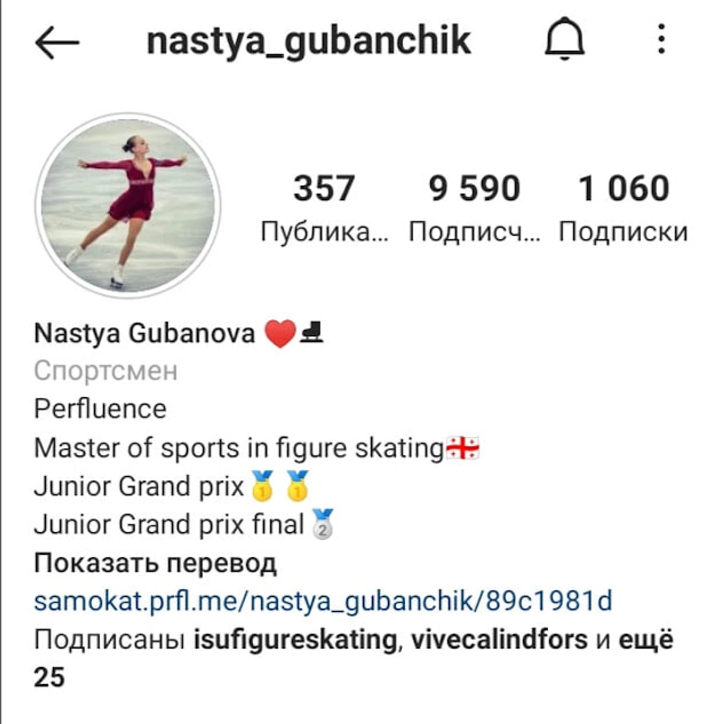 Российская фигуристка Анастасия Губанова добавила флаг Грузии в описание профиля в инстаграме.