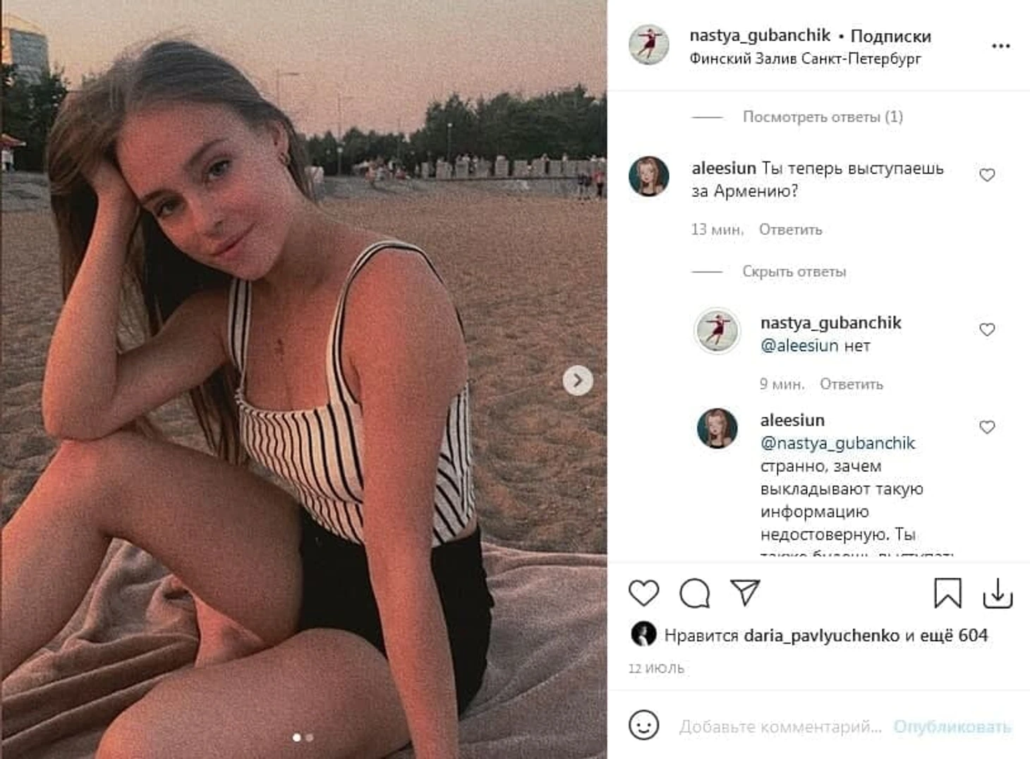 В комментариях фигуристка опровергла информацию о переходе в сборную Армении.