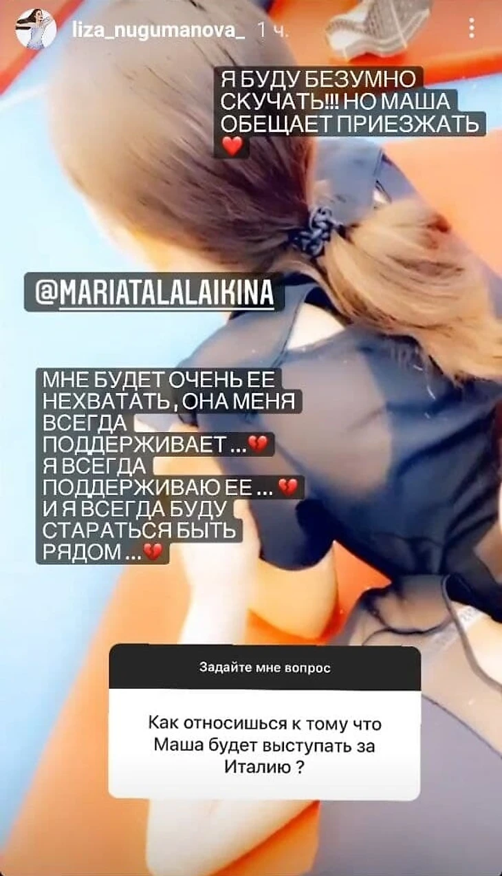 Подписчики Елизаветы Нугумановой спросили фигуристку, как она относится к переходу Талалайкиной в сборную Италии.