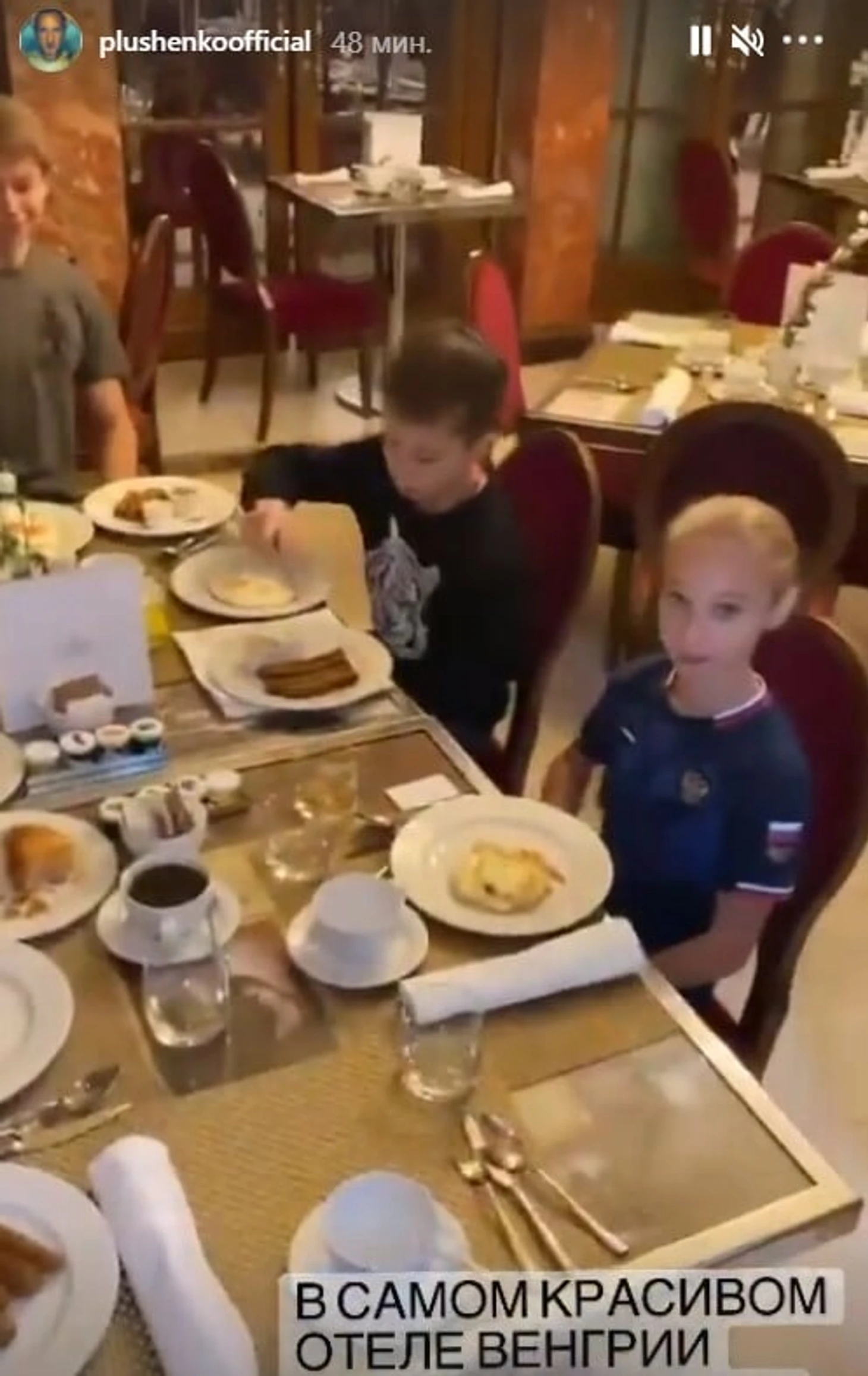 «Рубрика «Наши завтраки». В самом красивом отеле Венгрии», – написал Плющенко в сторис.