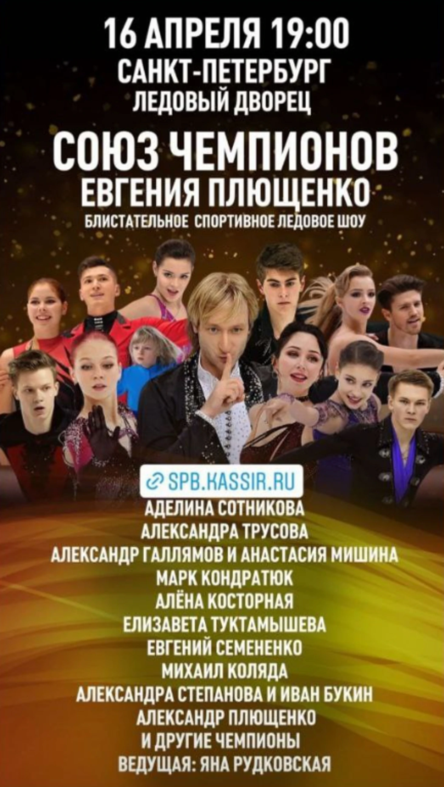 Шоу под названием «Союз Чемпионов» пройдет 16 апреля в Ледовом дворце Санкт-Петербурга.