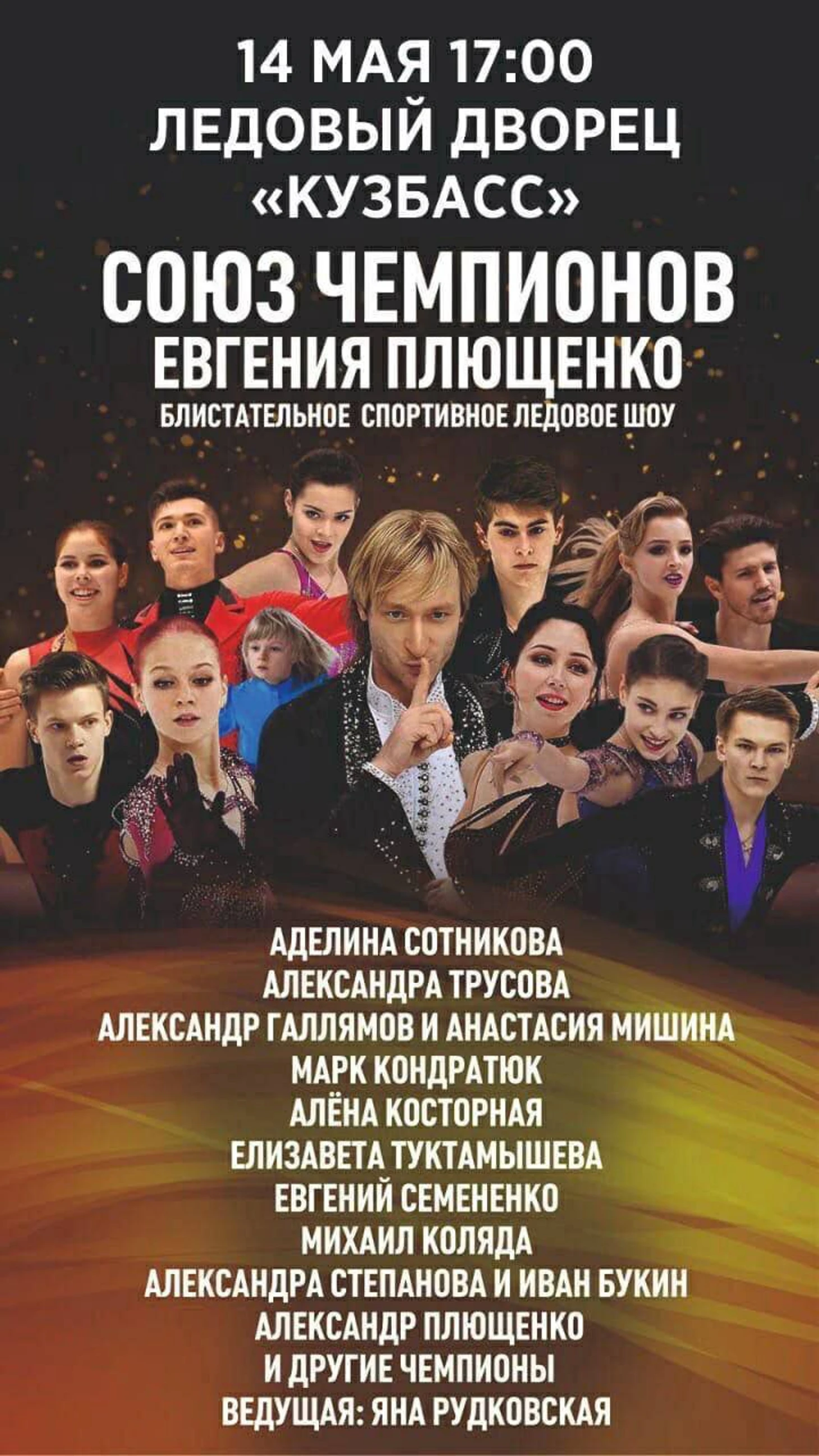 14 мая в ледовом дворце «Кузбасс» в Кемерово пройдет ледовое шоу Евгения Плющенко «Союз чемпионов».