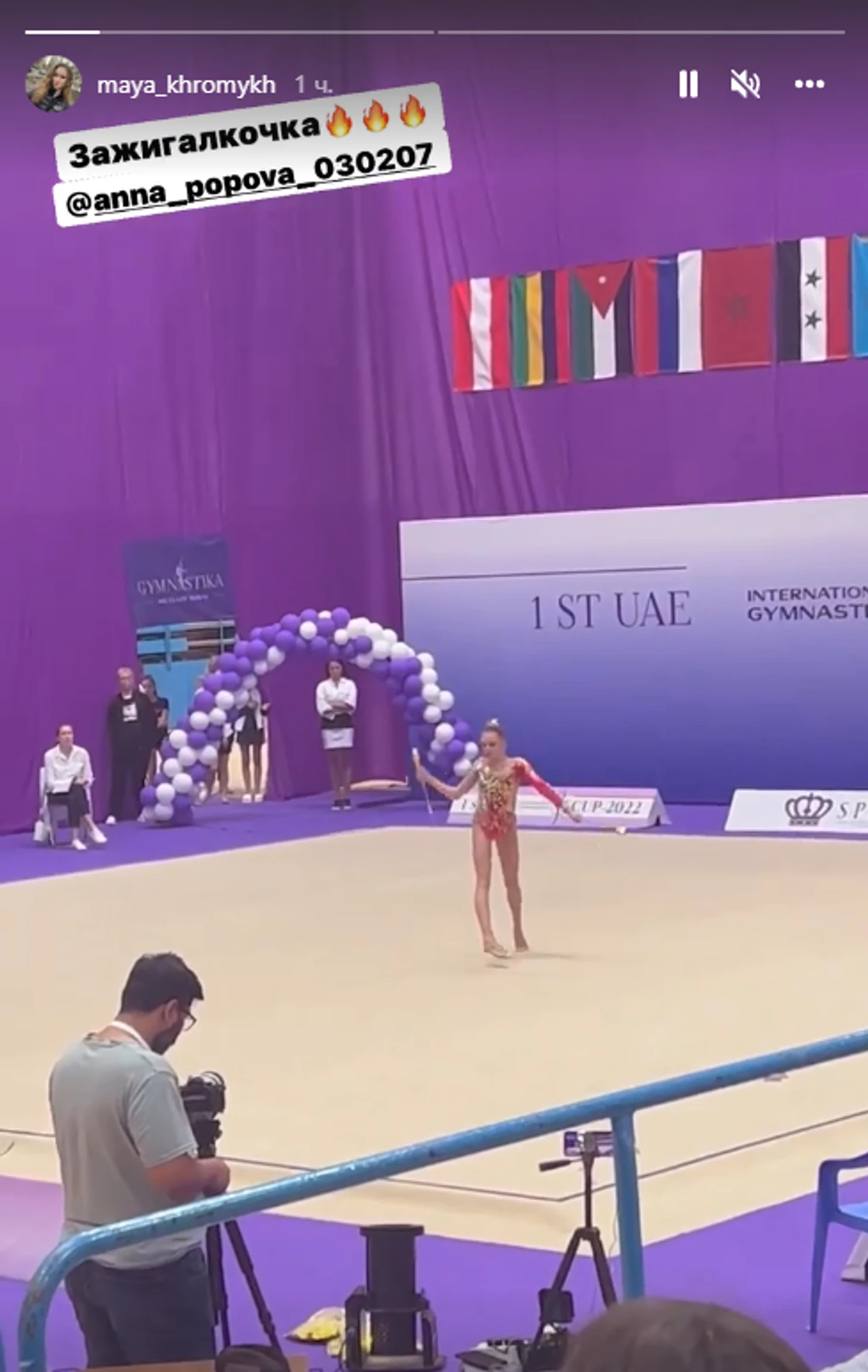 «Зажигалочка 🔥🔥🔥», – написала Хромых в сторис, комментируя выступление гимнастки Анны Поповой.
