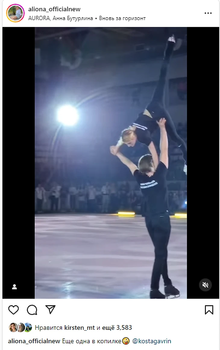 Во время шоу «Союз чемпионов» в Краснодаре фигуристка сделала поддержку с Константином Гавриным.