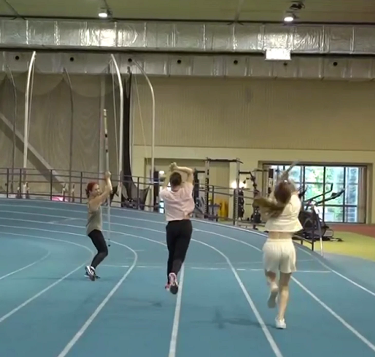 Российские фигуристки Александра Трусова, Камила Валиева и Дарья Усачева в Новогорске провели тренировку по легкой атлетике, во время которой учились прыгать с шестом.