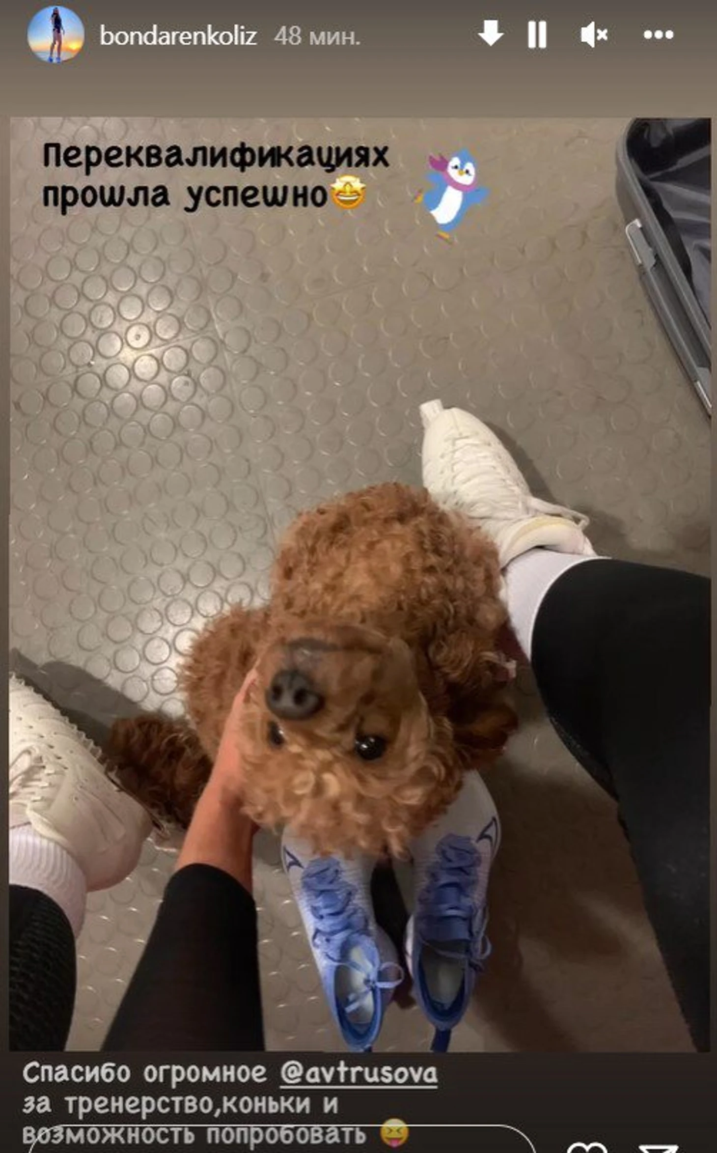 «Переквалификация прошла успешно. Спасибо огромное Александре Трусовой за тренерство, коньки и возможность попробовать», – написала Бондаренко в соцсети.