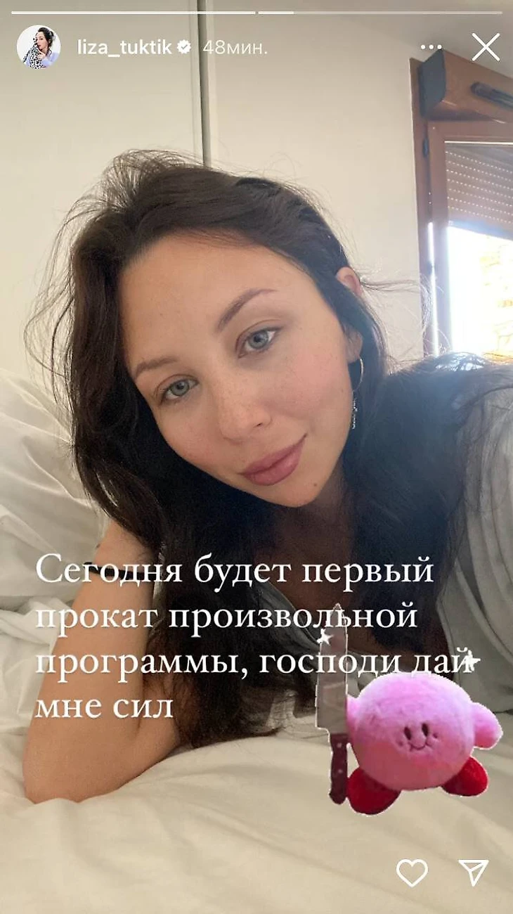 «Сегодня будет первый прокат произвольной программы. Господи, дай мне сил», – написала Туктамышева.