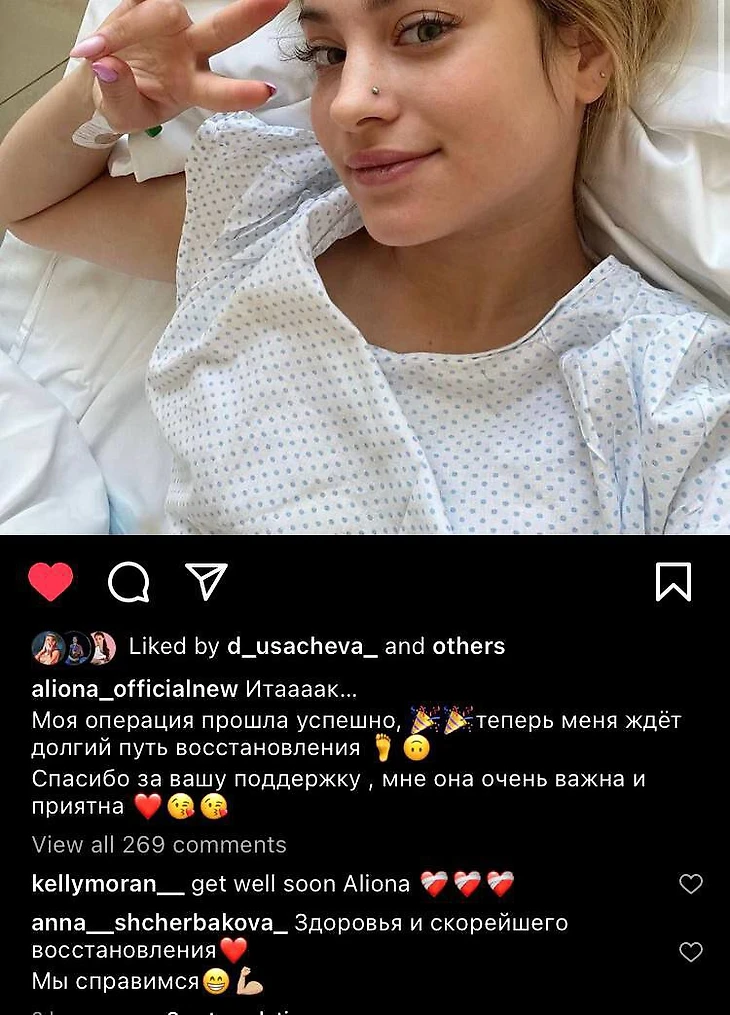 «Здоровья и скорейшего восстановления. Мы справимся», – написала Щербакова, которой ранее прооперировали колено.