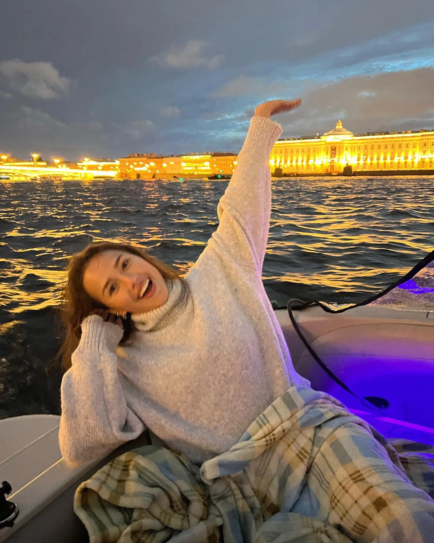 «Здорово было отвлечься от суеты города и тихо поплавать на катере». Загитова показала фото с прогулки по Неве
