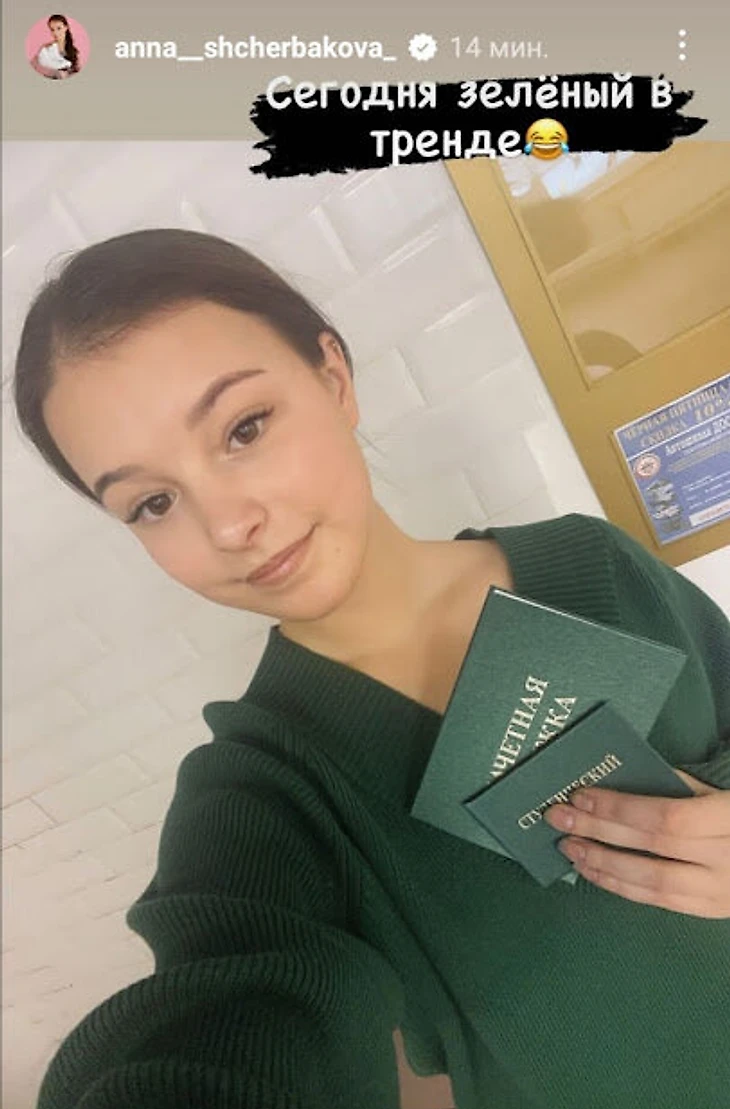 «Сегодня зеленый в тренде». Щербакова сдает сессию в университете