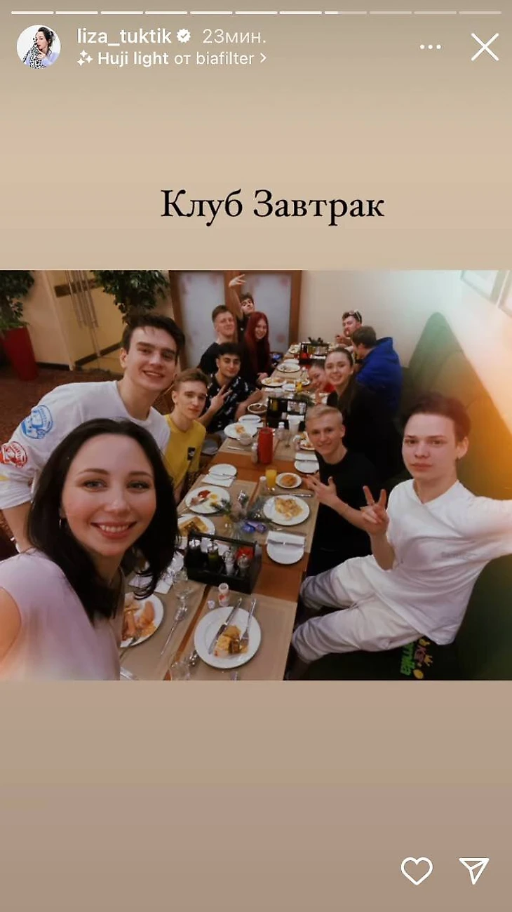 Фигуристка Елизавета Туктамышева поделилась фотографией с завтрака сборной на чемпионате России в Красноярске.