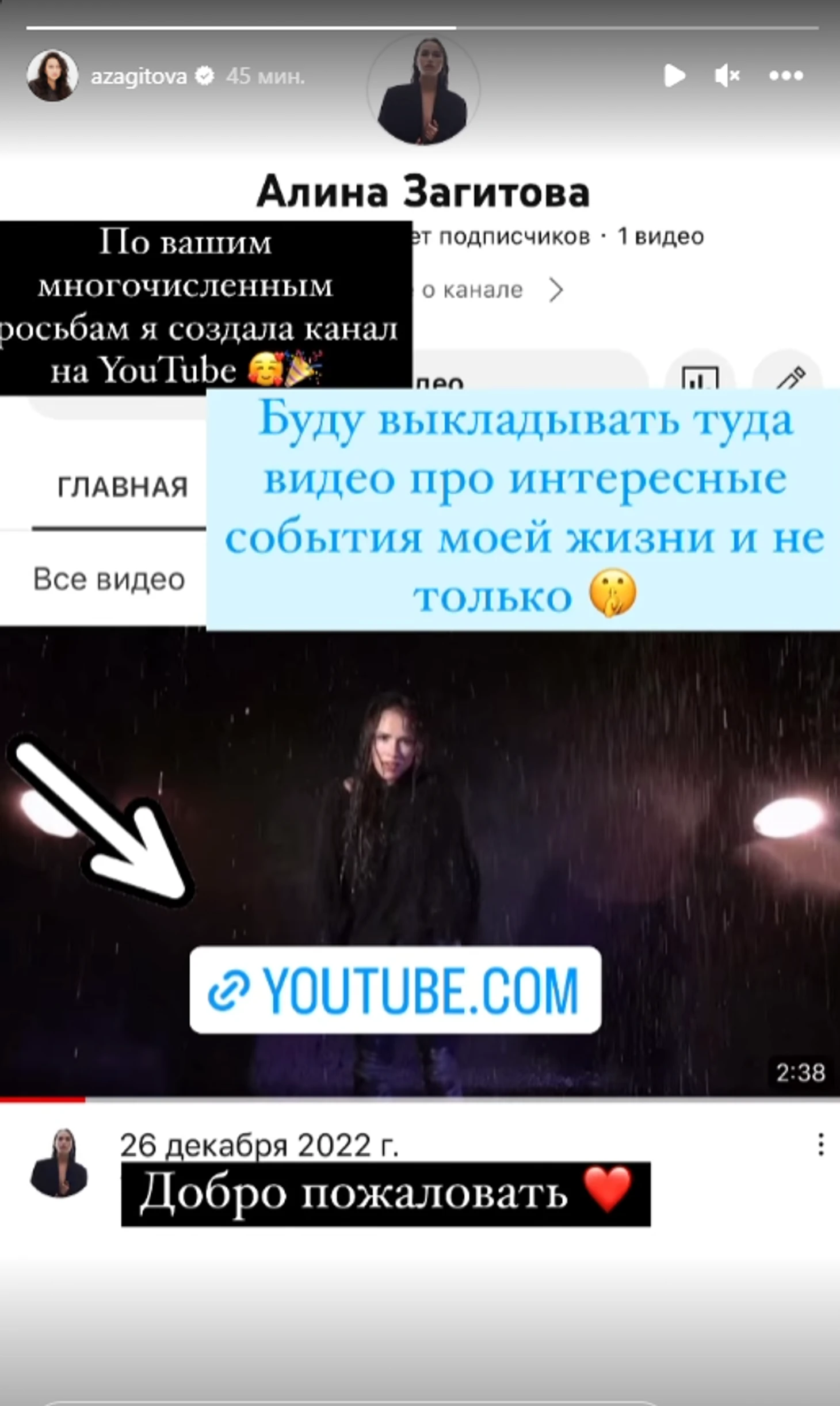 Загитова создала ютуб-канал: «Буду выкладывать туда видео про интересные события моей жизни и не только»