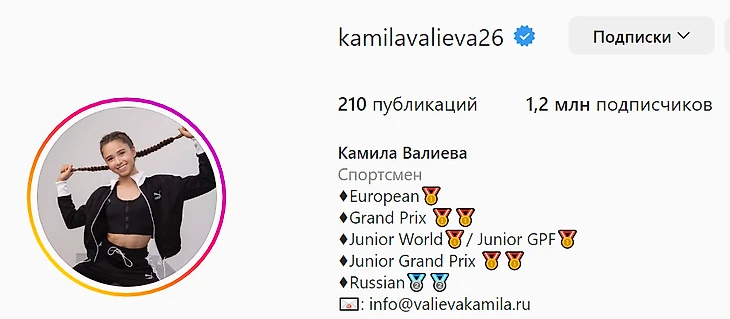 Камила Валиева убрала из соцсетей упоминание о титуле чемпионки России