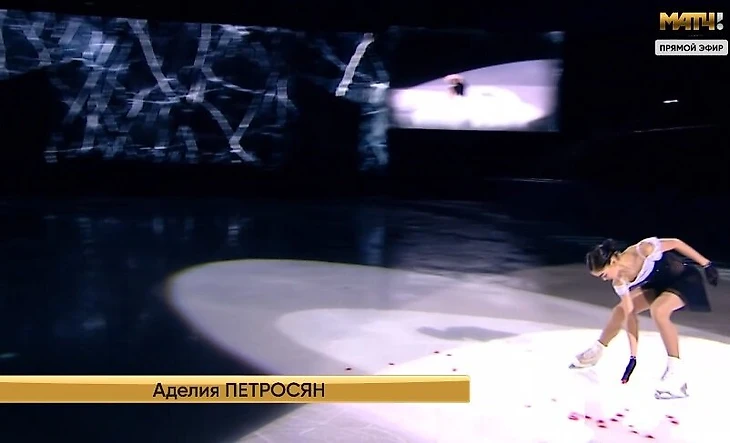 Петросян октрывала второе отделение после антракта – к моменту ее выхода лед так и не очистили полностью от лепестков.