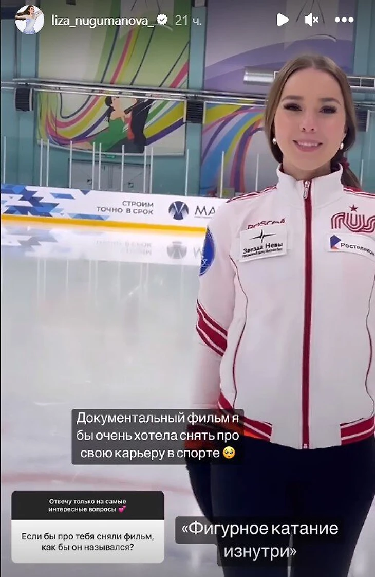 «Документальный фильм я бы очень хотела снять про свою карьеру в спорте», – добавила фигуристка.
