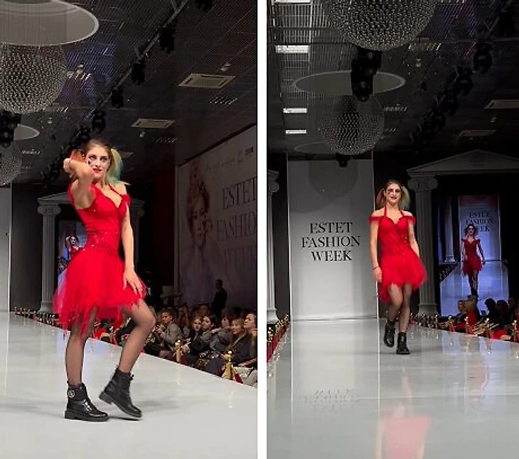 На показе Estet Fashion Week чемпионка Европы появилась в красном платье из показательной программы «Харли Квинн».