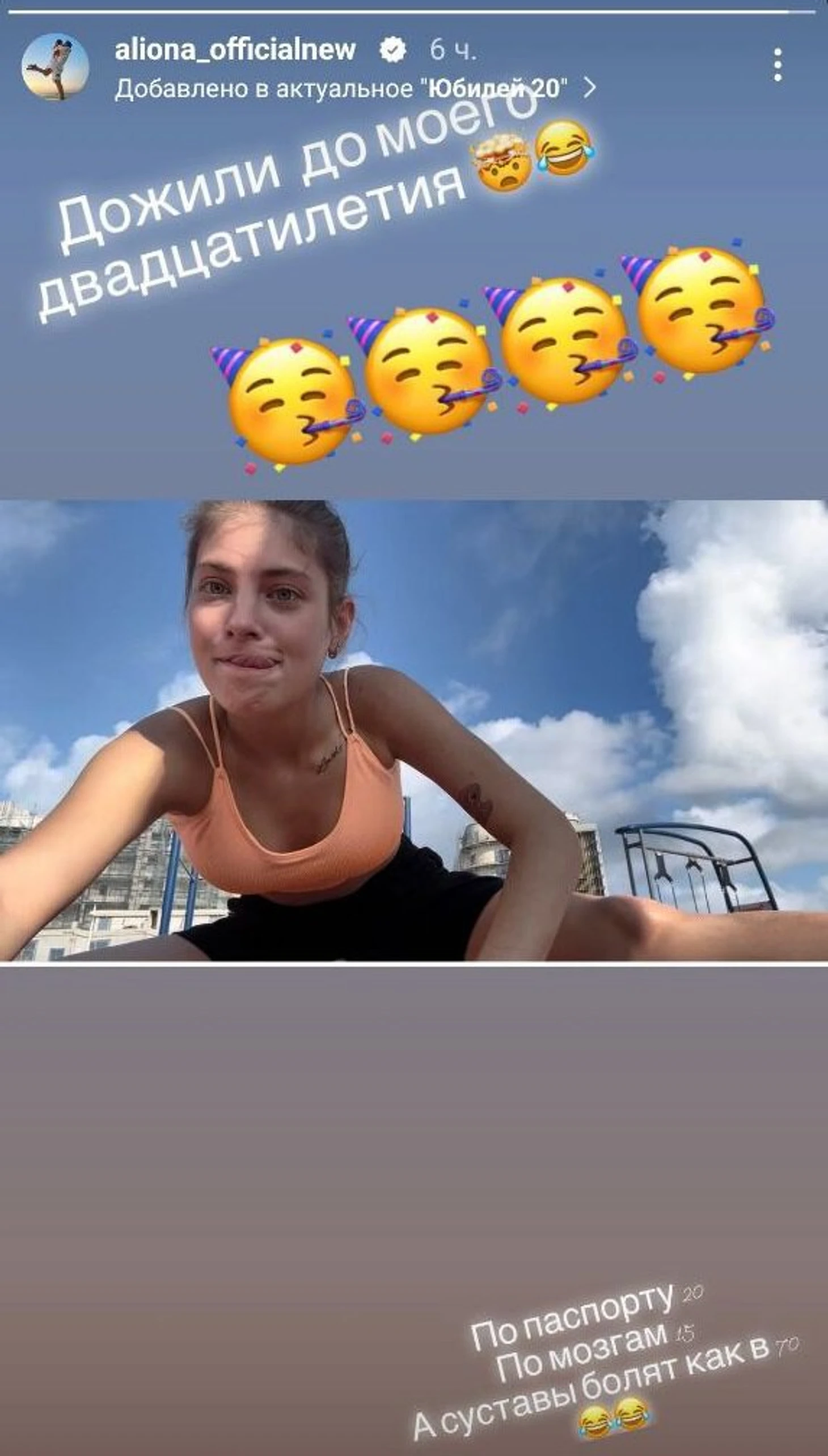 «Дожили до моего двадцатилетия. По паспорту 20, по мозгам 15, а суставы болят как в 70», – пошутила фигуристка.