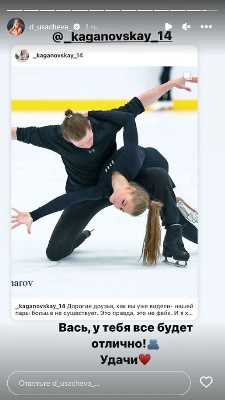 Усачева – Кагановской: «Вась, у тебя все будет отлично! Удачи»