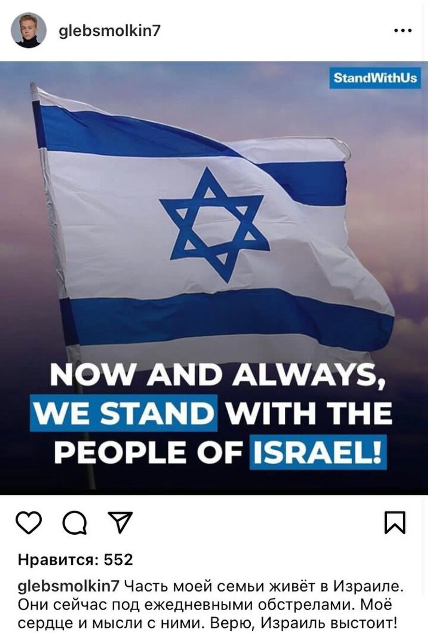 Глеб Смолкин: «Часть моей семьи живет в Израиле. Они сейчас под ежедневными обстрелами. Мое сердце и мысли с ними»