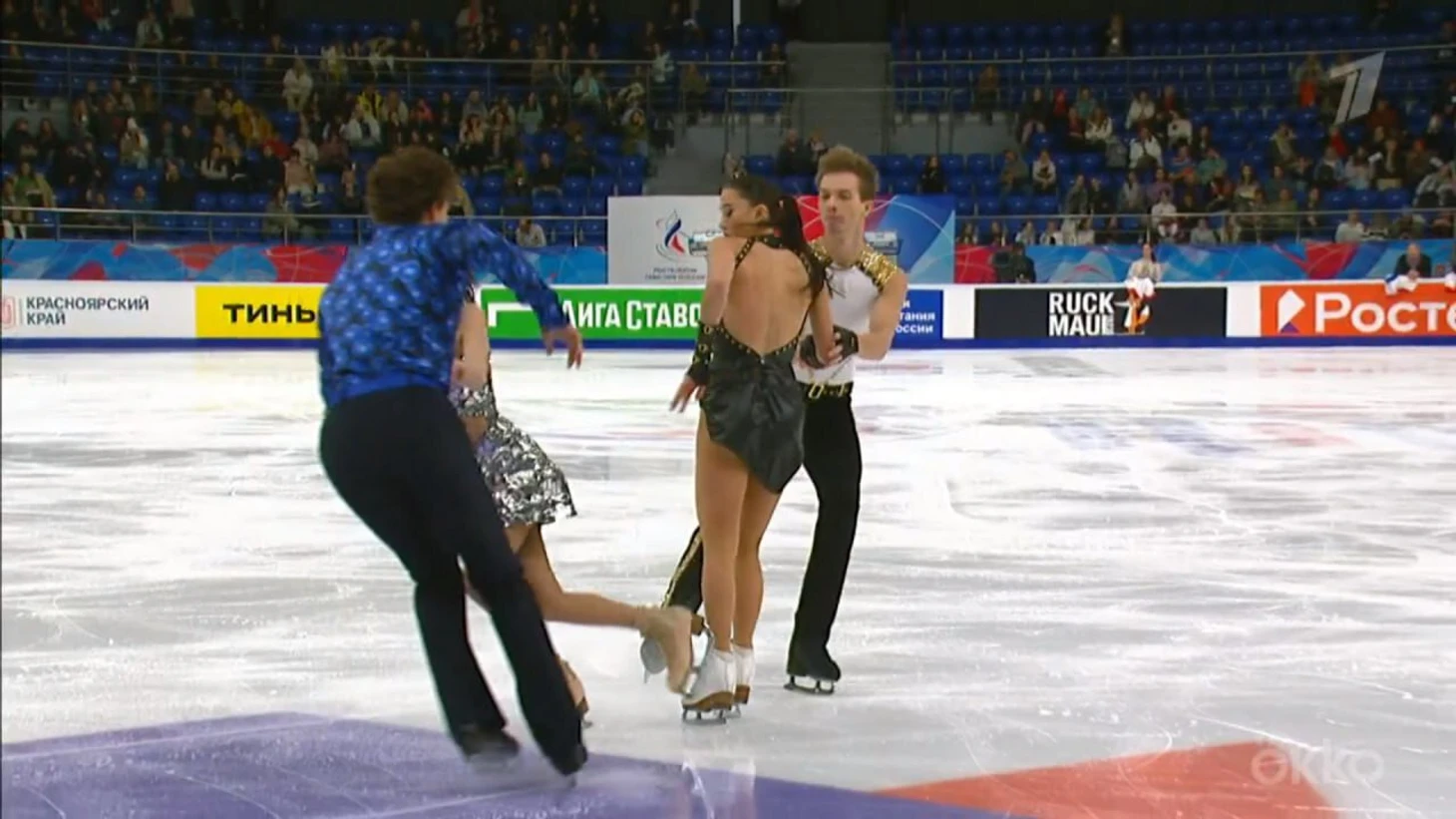 Елизавета Шанаева задела лезвием конька ногу Аннабель Морозов на разминке перед ритм-танцем