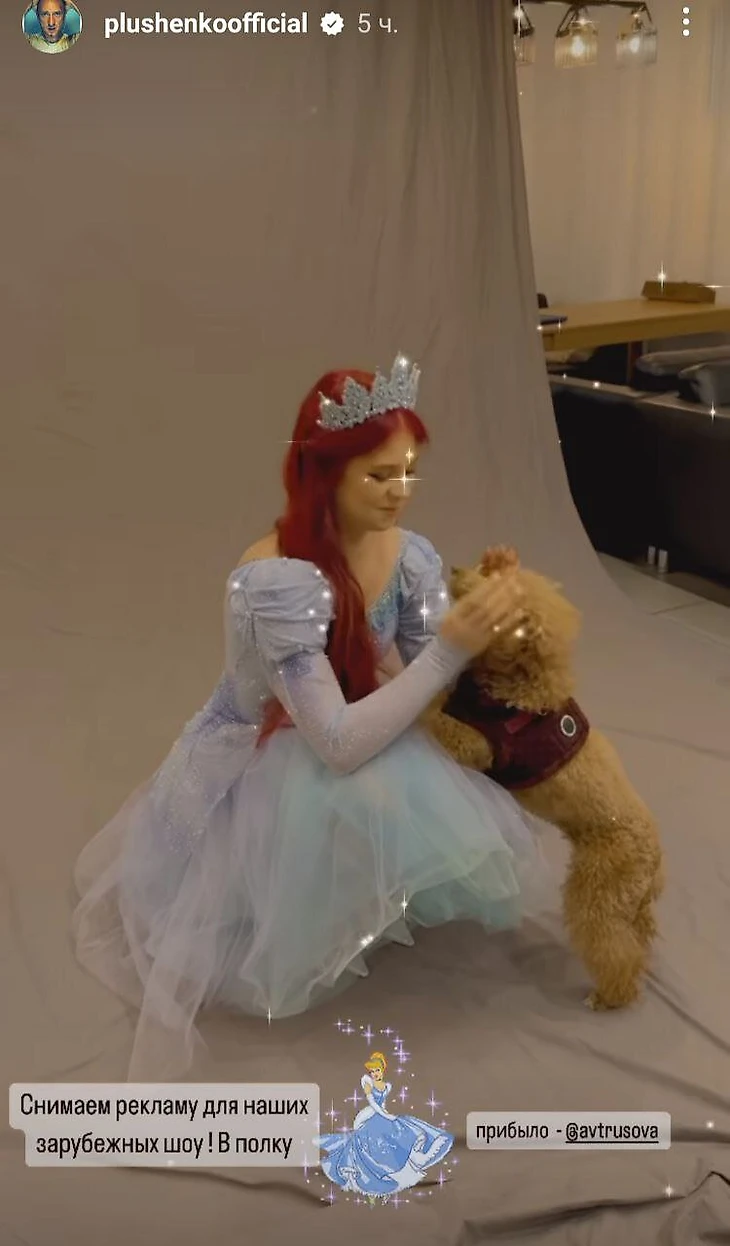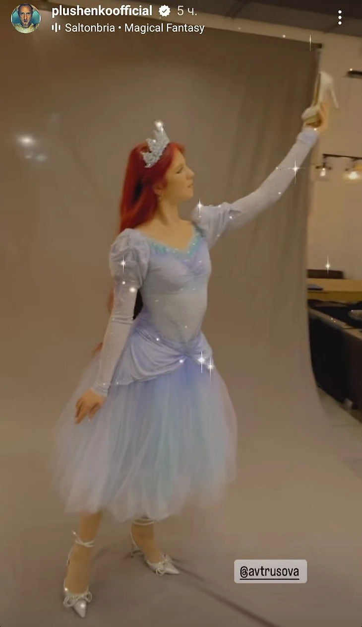 «Снимаем рекламу для наших зарубежных шоу! В полку прибыло – Александра Трусова», – написал Плющенко, прикрепив анимированную картинку с Золушкой.