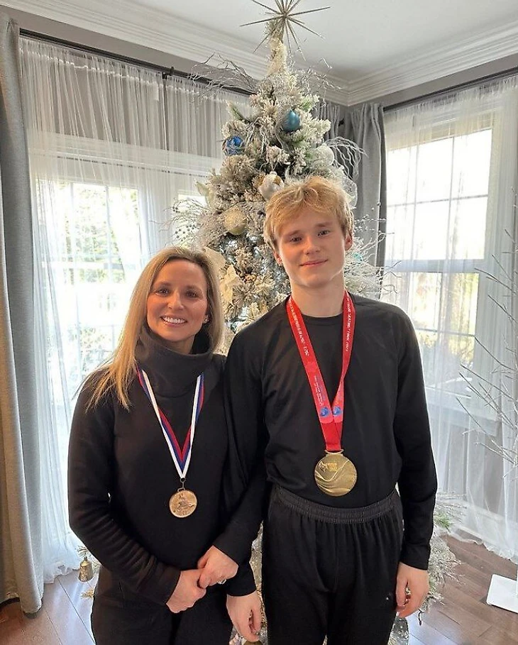 Илья Малинин опубликовал фото с мамой и золотыми медалями Финала Гран-при.