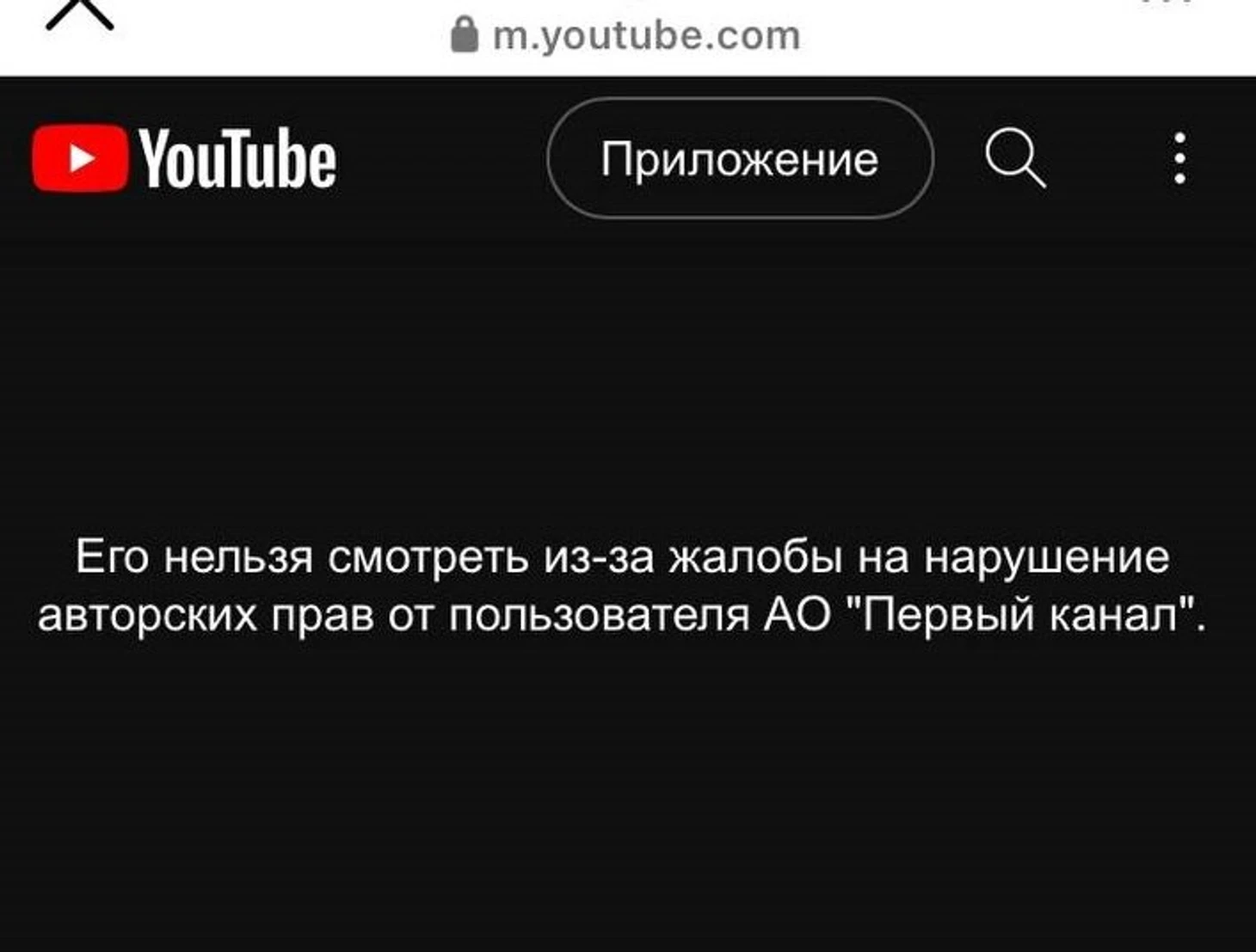 При переходе на страницу с влогом появляется сообщение, что его нельзя смотреть из-за жалобы на нарушение авторских прав от АО «Первый канал».