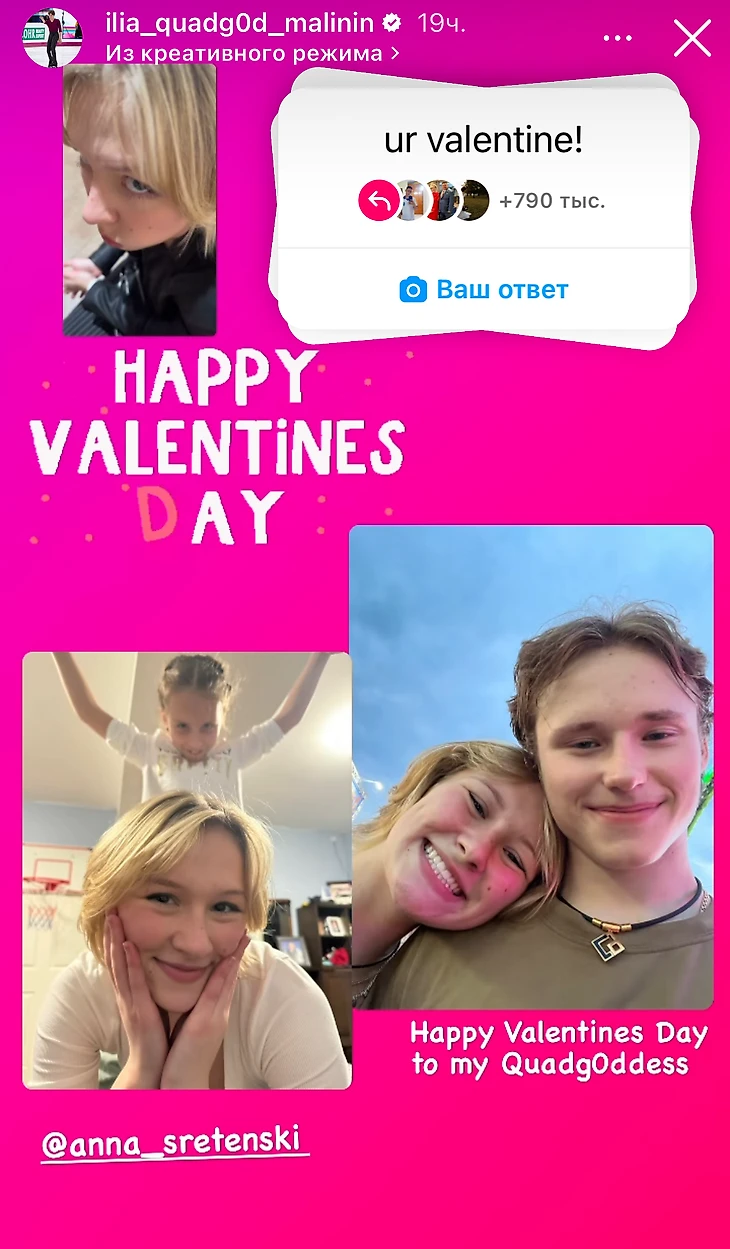 Американский фигурист Илья Малинин поделился фото со своей девушкой.